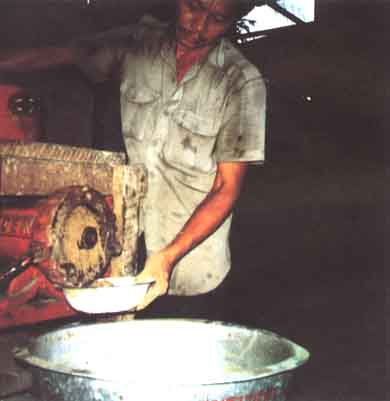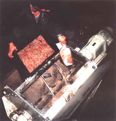 g) When you mince wet ingredients, collect the liquid as well as the solid material that emerges from the mincer. Don't waste it; it contains valuable nutrients and attractants which are essential parts of the final feed.h) Don't allow foreign bodies to enter the grinding or mincing machinery. Large commercial scale grinders have devices such as screens and magnets to prevent the entry of articles other than the feed itself. Hand operated equipment does not. Knives, nails, string, stones, etc., harm your equipment and may cause other problems (section 5.5).