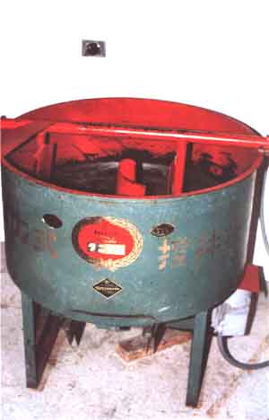 After all the ingredients of a moist feed have been added and mixed it is (if the formulation is accurate) normally necessary to add some water to adjust the consistency to that which will extrude satisfactorily. The proper consistency is checked in the same way as was explained in section 5.4.2. Be careful not to add too much water at first; if the quantity added proves to be too little you can easily add more. If the same formula is always being made and the same batches of ingredients are being used, it becomes possible to quantify the amount of water to be added, speeding up the operation. However, it is not possible to do this when the ingredient source and the type of feed being made is frequently altered. As to Judging whether enough water has been added to provide the correct consistency for extrusion through the mincer, there is no good substitute for the test suggested in section 5.4.2. This consists of squeezing the material in your hand (much as you might hand-test damp soil to assess its clay content when selecting sites for ponds) to see whether a 'sausage' of dough can be extruded between the thumb and the first finger which is neither too runny nor too crumbly.