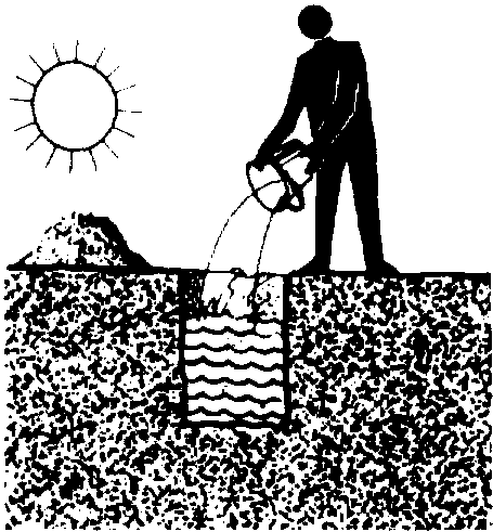 46 Then fill the hole with water again. Fill it to the top. Cover the hole with boards or leafy branches.
