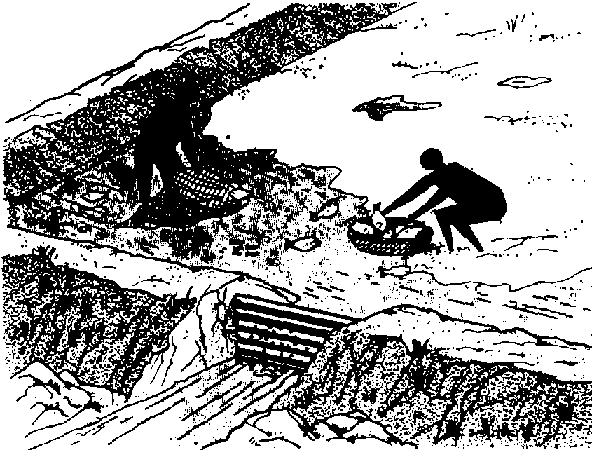 316 Start at the deep end of the pond and pull the seine net slowly toward the shallow end. The drawing shows you how.