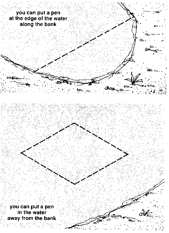 368 You can build a pen in the shallow water of a stream, a river, a lake or a reservoir.