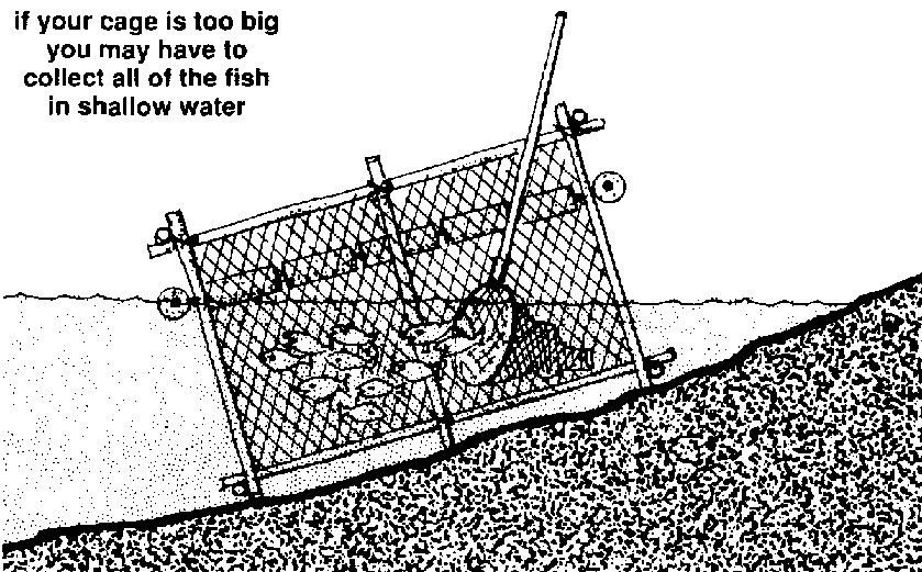 517 If your cage is too big to lift out of the water, pull it into shallow water as far as you can and collect the remaining fish.