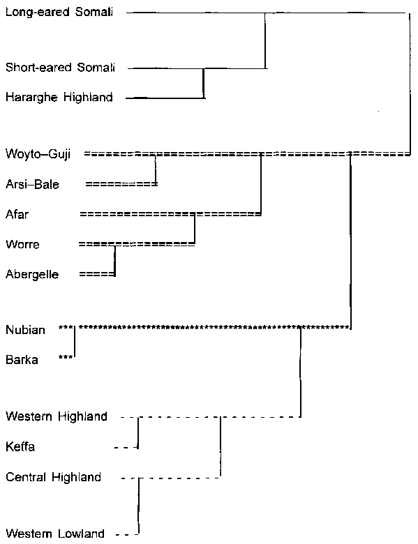 Each region surveyed was stratified by altitude and ethnic group. Peasant Associations (PAs), the smallest administrative unit in Ethiopia and Eritrea, were taken as sampling sites. Sites were selected at 500 m intervals along altitude transects spanning the known ethnic range (Figure 2). The survey included only one visit to a sampling site at which whole flocks of goats were sampled until about 500 goats had been physically measured.