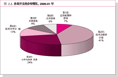 20. 报告本章提供的信息包括资源的变化情况、实地计划支持费用、粮农组织技术官员向实地计划提供的技术支持量和有关执行粮农组织语言政策的进展报告、人事方面的进展情况和产出的概要情况。在计划执行报告的下一章有关计划执行概要中在计划一级提供了对2000-01两年度工作计划和预算(PWB)中的技术计划所述产出执行情况的进一步分析。有关2000-01两年度工作计划和预算中所有产出和其执行情况的详细信息已上粮农组织因特网站http://www.fao.org/pir/ 。