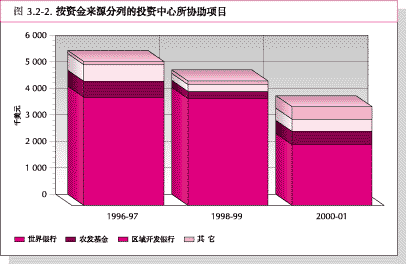 445. 虽然农发基金和区域开发银行从1998-99两年度增长了,而世界银行承诺的投资总额却从1998-99两年度40亿美元 降至2000-01年的约23亿美元(图3.2-2)。