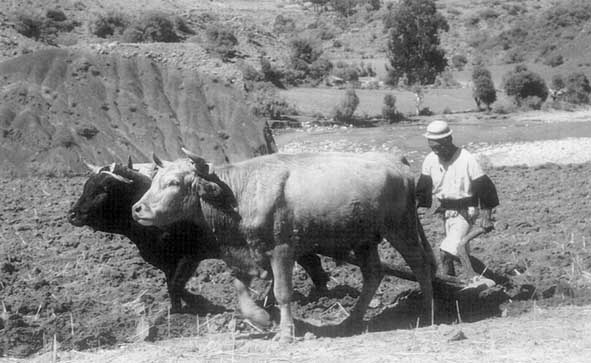 Traditional soil tillage practice using animal traction