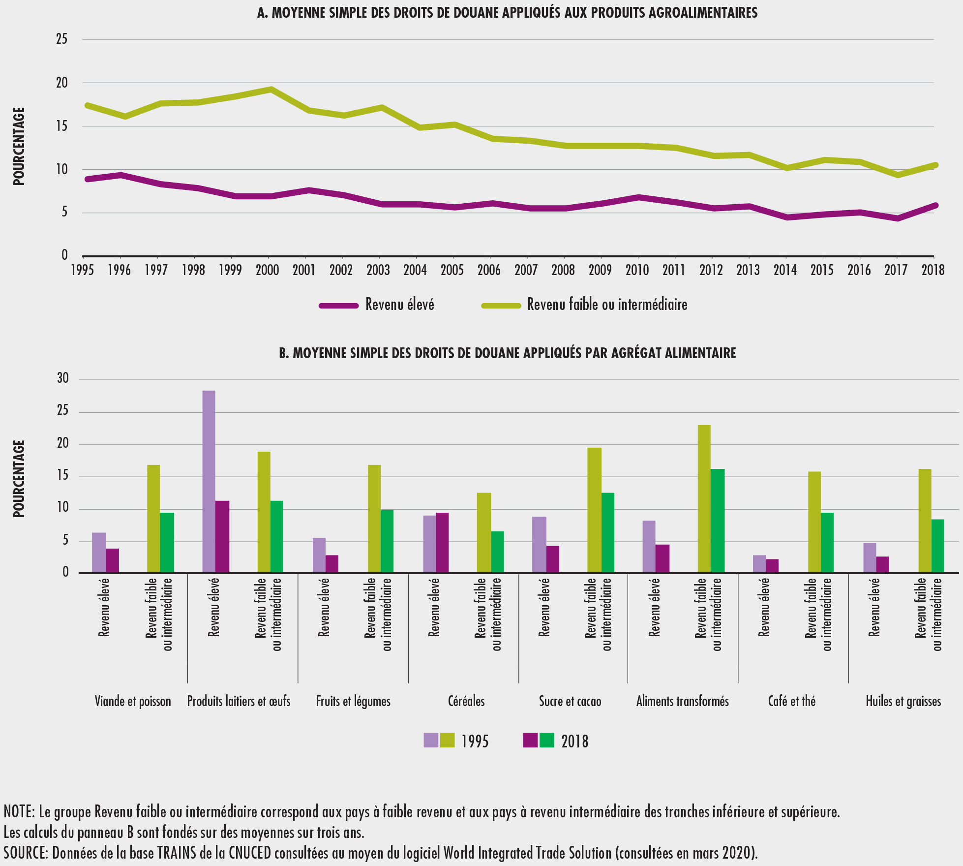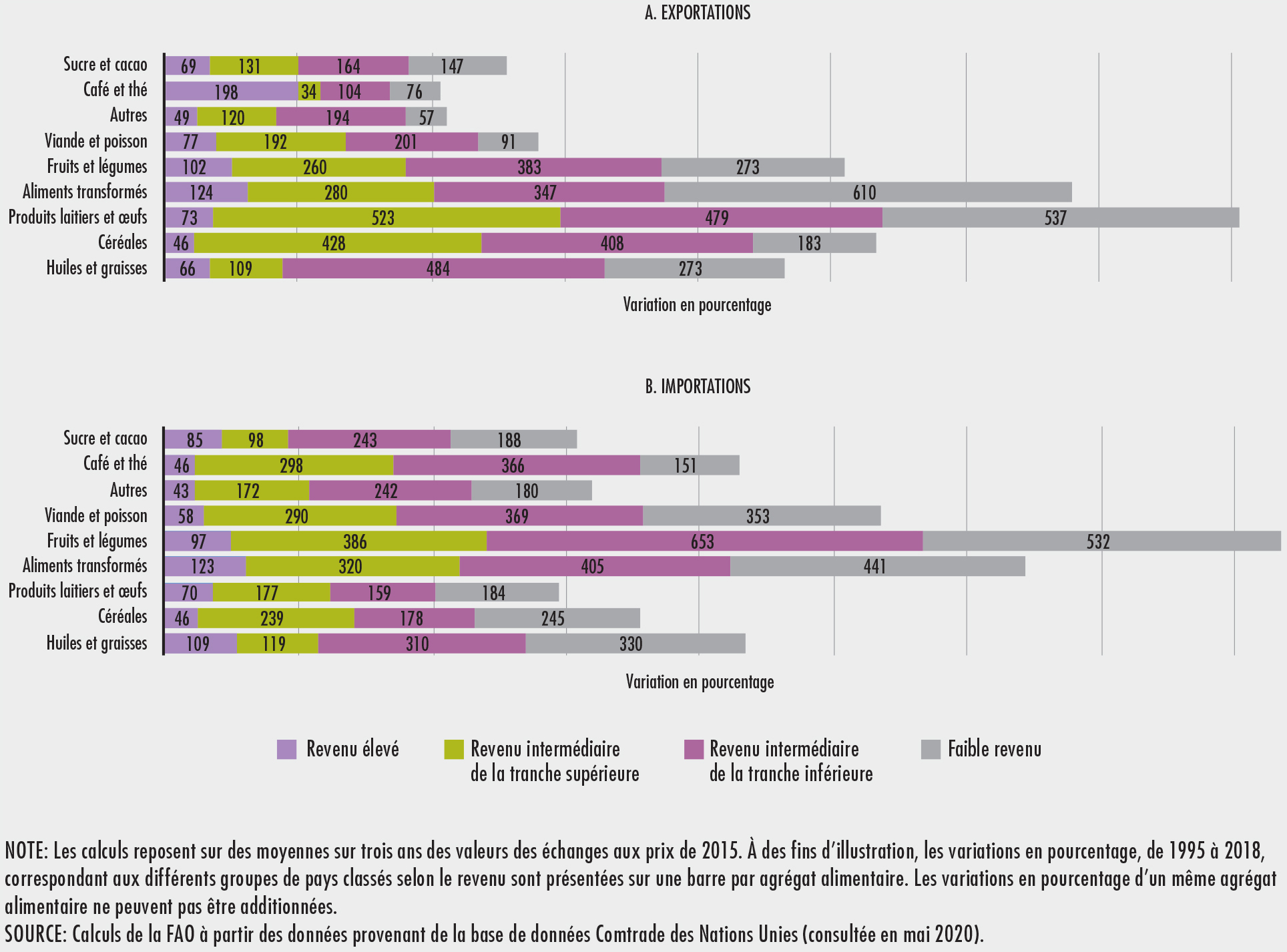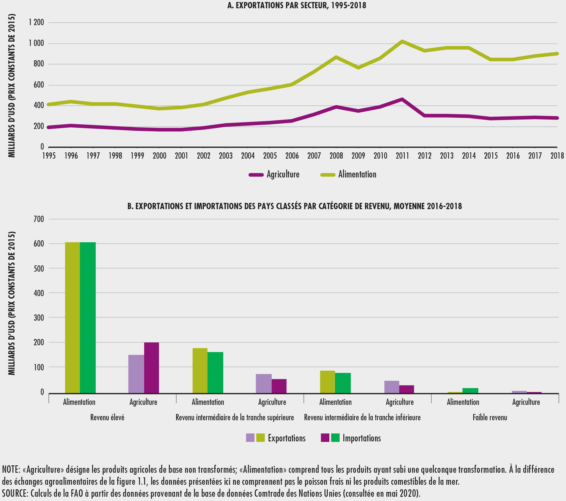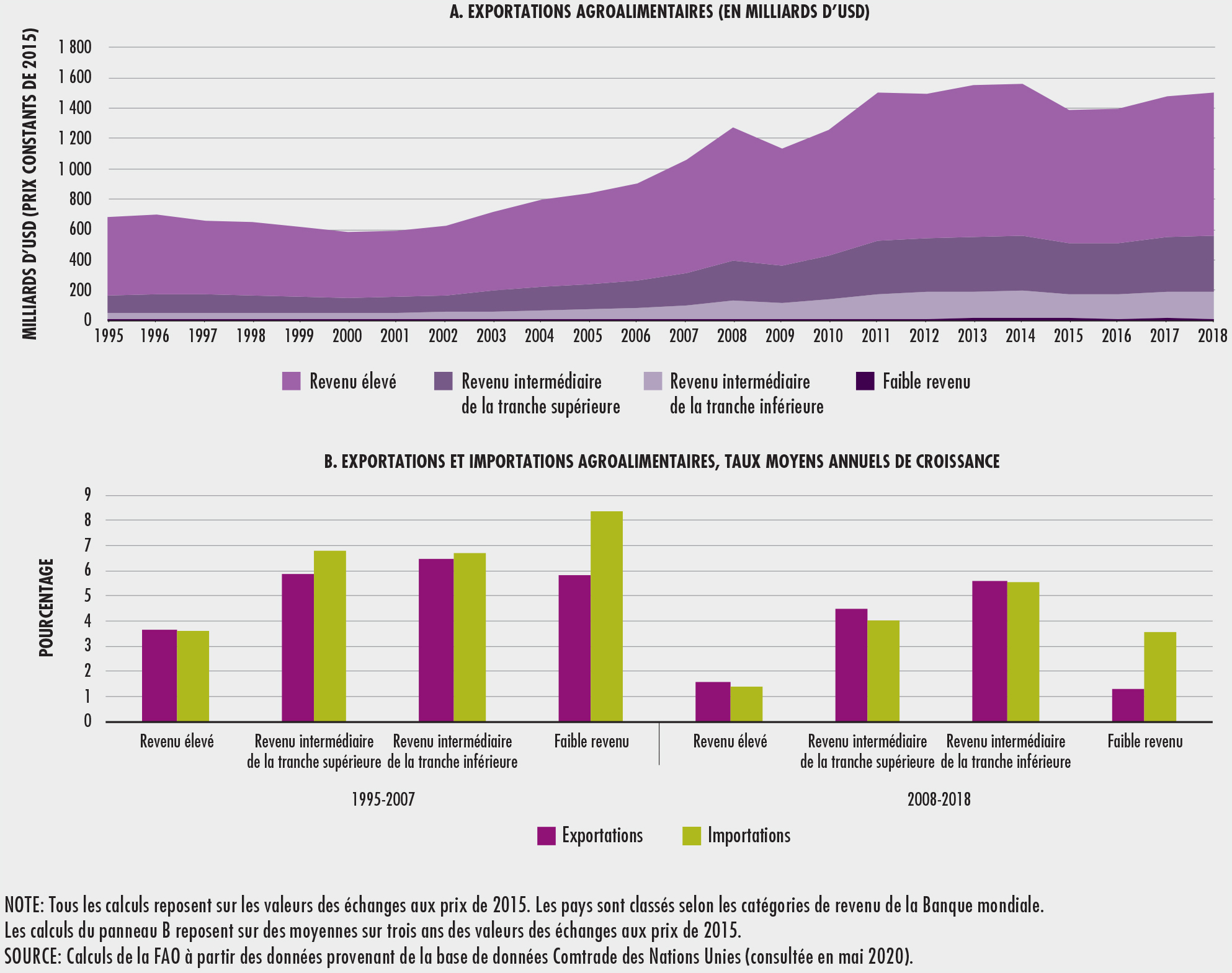 1.1 Évolution des échanges agroalimentaires, 1995-2018 (pays classés par catégorie de revenu)