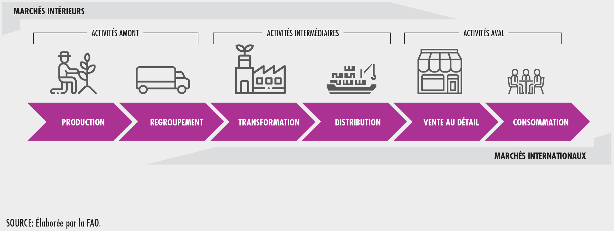 L’un des arguments qui sous-tendent le présent rapport est que des marchés qui fonctionnent bien sont essentiels au développement et à la croissance économique. Les échanges internationaux peuvent constituer un instrument puissant, et les marchés peuvent être mis à profit pour obtenir des résultats économiques, sociaux et environnementaux. Les chaînes de valeur mondiales peuvent faciliter l’intégration des pays en développement dans les marchés internationaux. Elles relient étroitement nos marchés de produits alimentaires et offrent ainsi un moyen de diffuser les meilleures pratiques au service du développement durable.