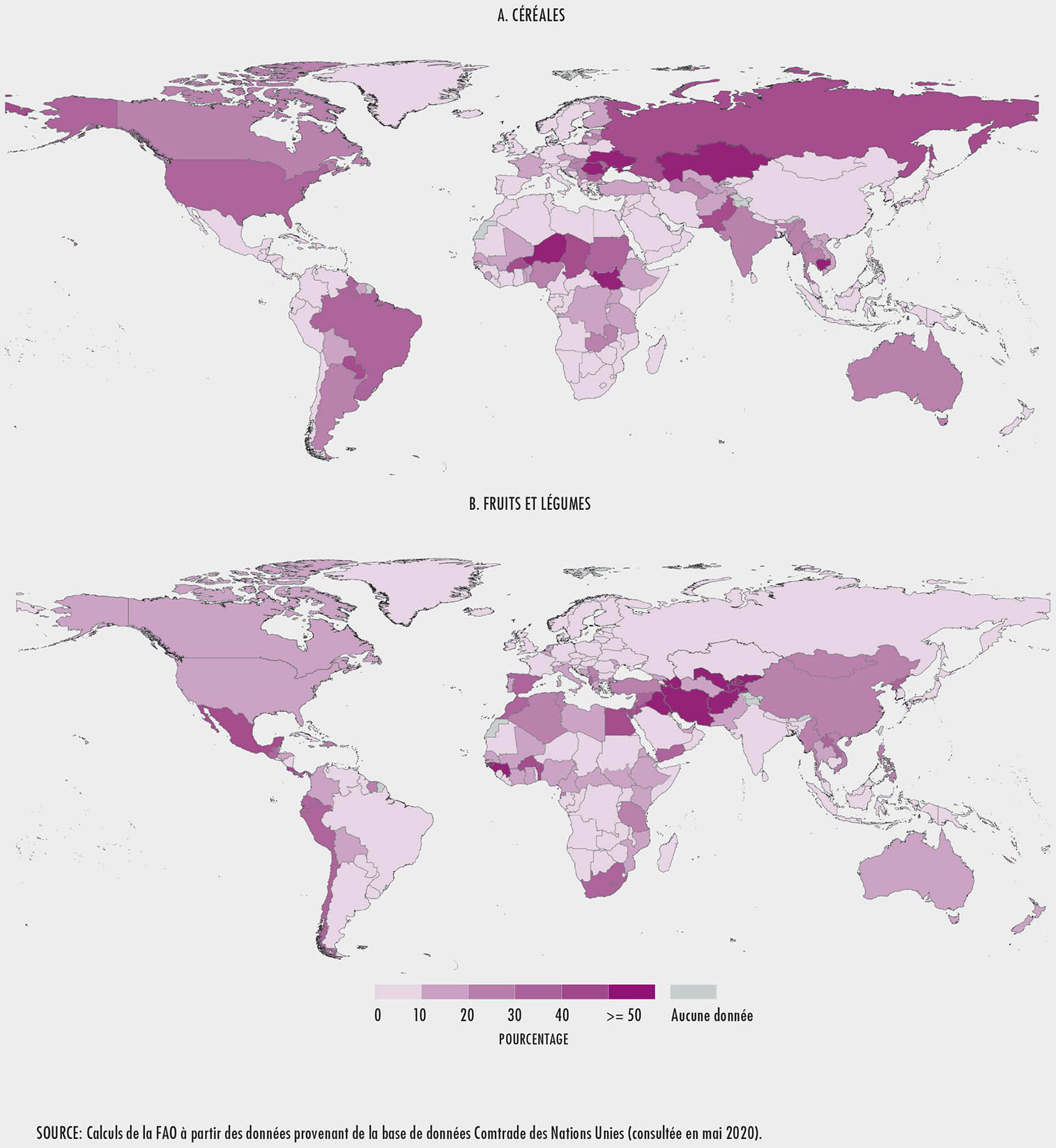 Cette pandémie fait clairement ressortir que, dans un monde interconnecté, les maladies, ainsi que les incidences des mesures qui sont prises pour les contenir, se propagent rapidement au-delà des frontières nationales. Cette crise n’est pas le thème central du présent rapport, mais elle illustre bien le lien étroit qui existe entre la production, la consommation et les échanges de denrées alimentaires. On comprend dès lors qu’il importe d’adopter une approche intégrée des systèmes alimentaires, et que la parution de La situation des marchés des produits agricoles 2020 vient particulièrement à propos.