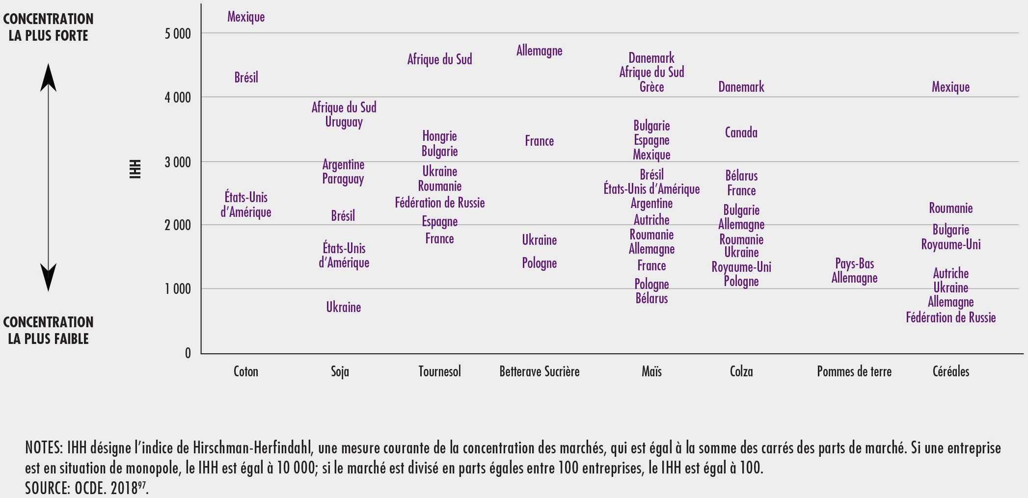 2.13 Variation du degré de concentration des marchés des semences par culture et par région