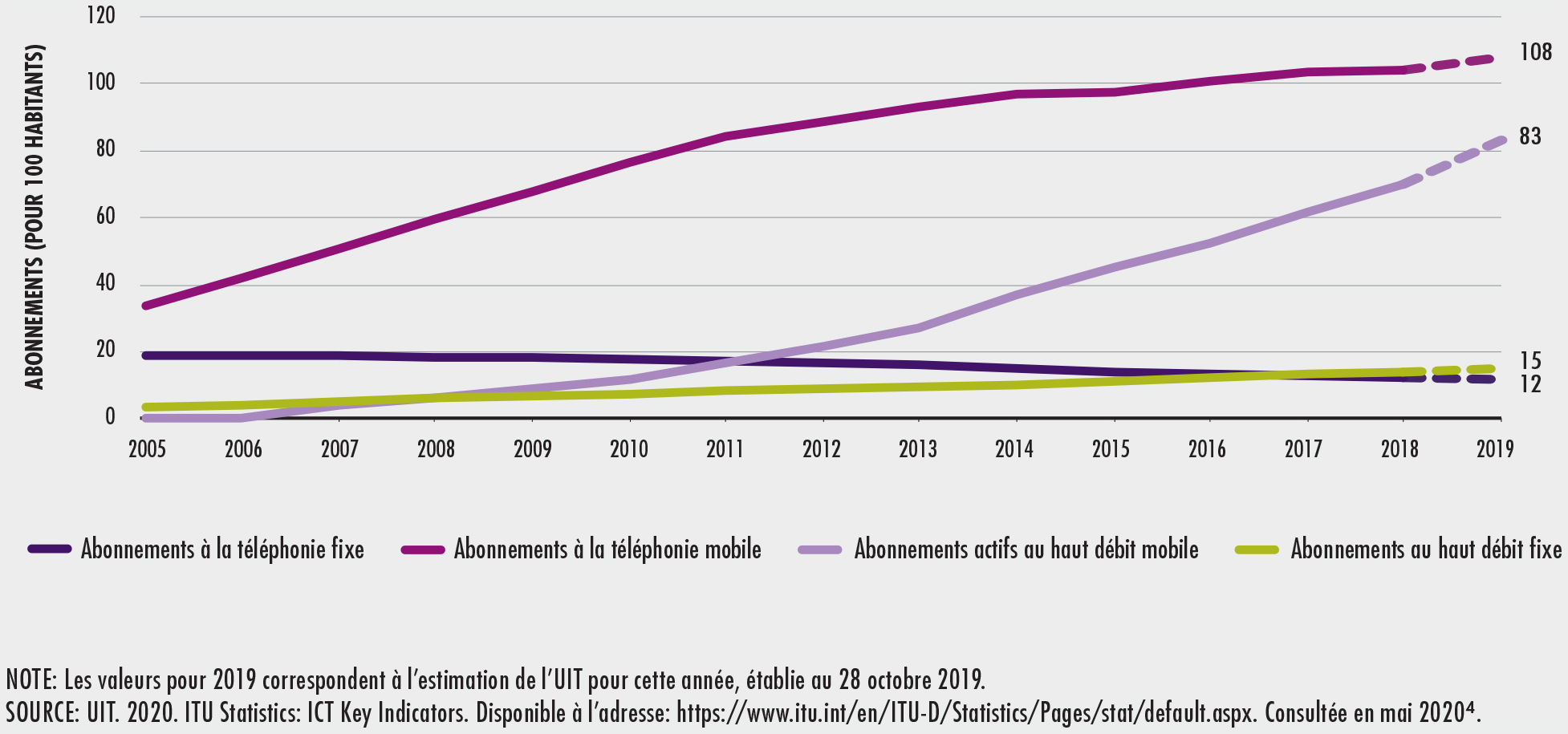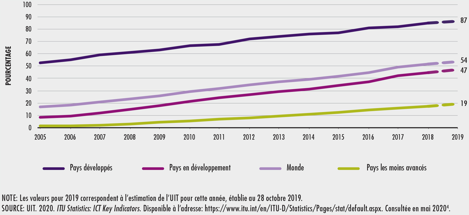 3. UIT. 2019. Measuring digital development: Facts and figures. [Consulté le 16 mars 2020] www.itu.int/en/ITU-D/Statistics/Documents/facts/FactsFigures2019.pdf3.