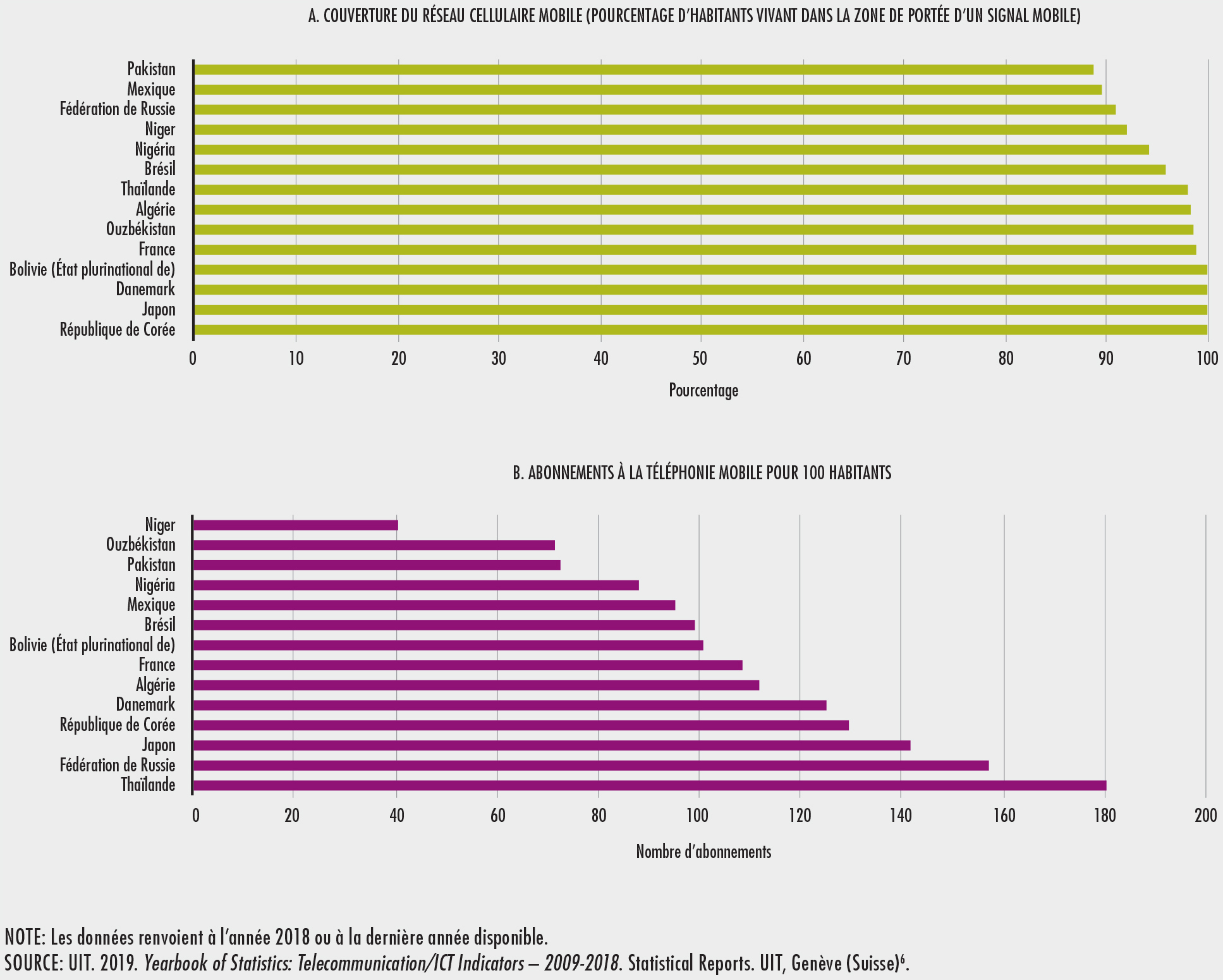 4.2 Accès à la téléphonie mobile dans certains pays, 2018
