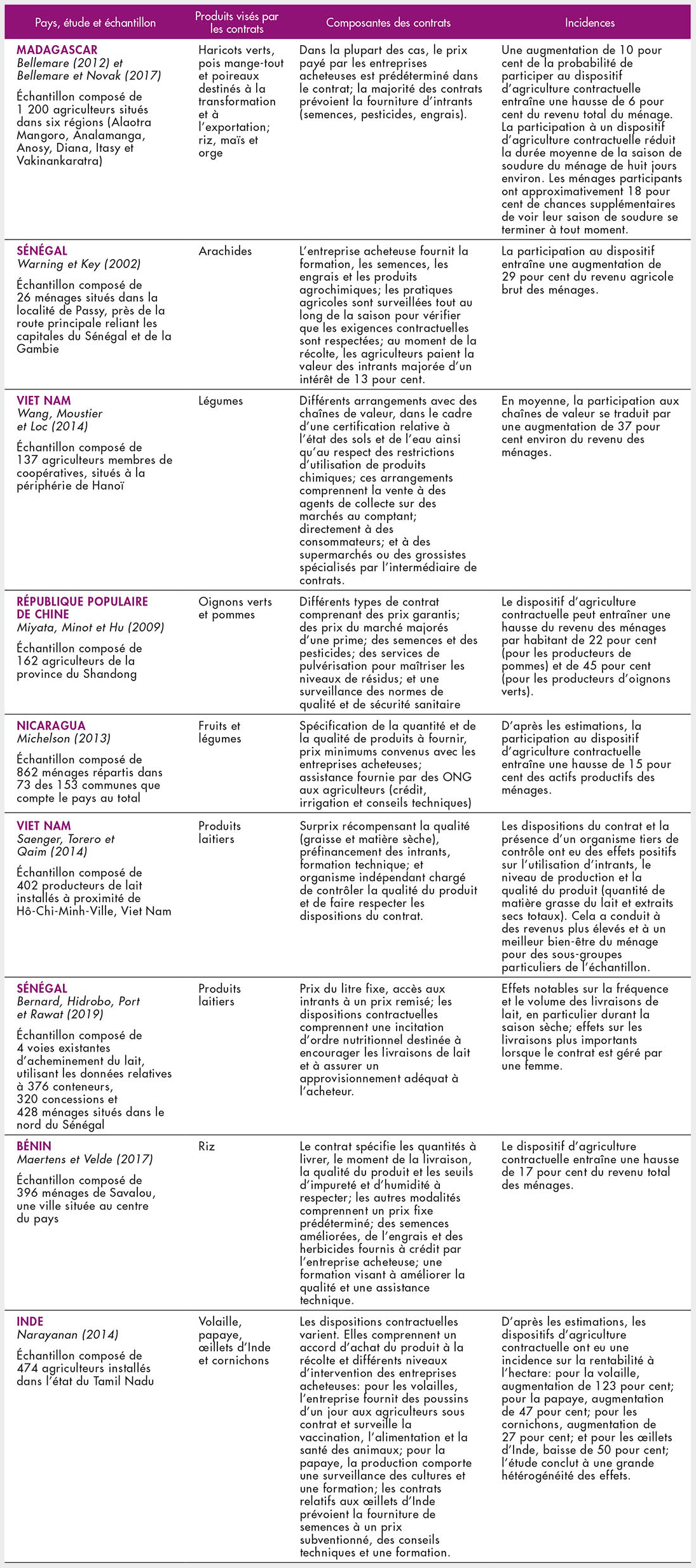 3.1 Études de dispositifs d’agriculture contractuelle examinées dans le présent rapport