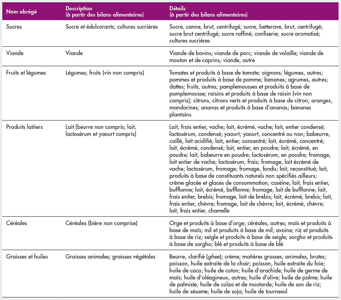 A.2 Définition des agrégats alimentaires utilisés dans les bilans alimentaires établis par la FAO