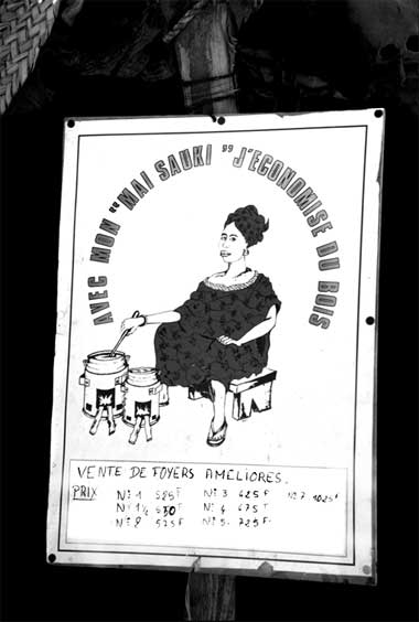 For many fuelwood users in developing countries, energy options are limited; for these users, efforts have been targeted at improving the efficiency of cheap stoves (as promoted in this poster in the Niger) to improve their welfare |
