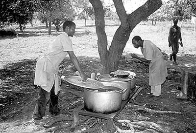 Some commercial enterprises such as food processing industries take part in the monetary economy but are still limited in their energy options (shown, street food preparation in the Sudan) |