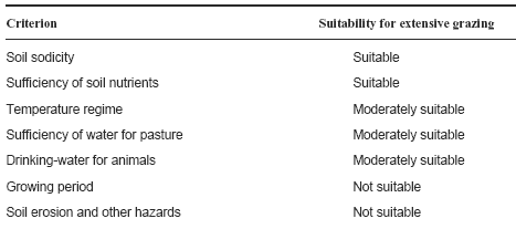 Meatu district was evaluated for its suitability for extensive grazing under silvipastoral land use based on land and environmental conditions (Table 1).