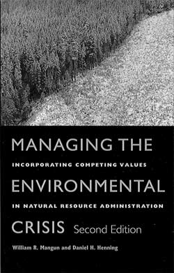 Managing the environmental crisis: incorporating competing values in natural resource administration. W.R. Mangun & D.H. Henning. 1999. Durham, North Carolina, USA, Duke University Press. ISBN 0-8223-2413-X. 2nd edition.