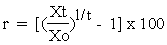 · By calculating moving averages in order to eliminate the effect of fluctuations. For example, the 1980 3-year moving average of production for a commodity would be the production average for the years 1979, 1980 and 1981. There is no rule concerning the number of years that should be included when calculating a moving average. The choice will depend on commodity characteristics and on the data available. In most cases, 3- or 5-year moving averages are used.· By calculating the average annual rate of change for the variable over a defined period (t). This rate should always be calculated as a compound growth rate, defined as follows: