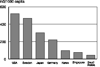 The second is that, by historical chance, the world's rich countries at present (north-west Europe, North America, Japan) have a strong tradition of wood use, which has been developed along with the rest of the economy. The structure of wood demand in these countries has been implicitly assumed to apply also to other parts of the world. Yet it is in fact unlikely that countries without a tradition of wood use will acquire one as they become richer, given that alternatives usually exist. This appears clearly from the per capita consumption of sawnwood in the sample of prosperous countries in figure 6.3.1. Thus, to take the two extremes, while the GDP per head in Saudi Arabia is roughly equivalent to that of the USA, its per capita consumption of sawnwood is 10 times less. This may be an extreme case, but it must be borne in mind that economic development is possible without high levels of consumption of forest products.