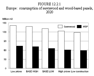 - European consumption of forest products is indeed strongly affected by price developments. For instance, consumption of paper and paperboard in 2020 would be over 20 per cent (23 million m.t.) higher if prices fell 1 per cent per year than if they rose 1 per cent per year (with all other assumptions unchanged);