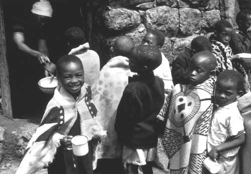 Distribution alimentaire pour les enfants au Lesotho: l'accroissement de la population provoque des pénuries alimentaires