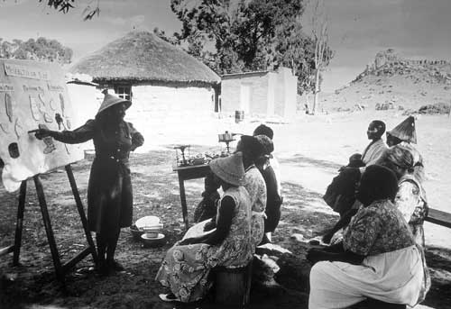 Dans les deux cas, il est plus facile de prévenir la malnutrition si les personnes affectées sont informées sur ce qu'est une alimentation saine et sur le meilleur moyen de répondre à leurs besoins nutritionnels. L'éducation sanitaire et nutritionnelle à tous les niveaux est donc fondamentale (photo 78) pour modifier les comportements. Changer son alimentation suppose d'être motivé et de faire l'effort de tenir compte de ses préférences, de son mode de vie et d'éventuelles contraintes de temps. C'est ce qui fait l'objet de ce chapitre.