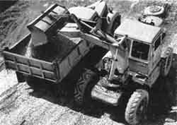 Características: 4 ruedas motrices, ejes planetarios; 3 velocidades de avance y 3 de retroceso; a pedido: dirección en las 4 ruedas, cucharón, horquilla, gancho de suspensión, alargador de pescante de 5,5 m.; maniobra hidráulica completa: motor de gasolina Chrysler de 90 c. f. (o motor Diesel GMC de 77 c.); dimensiones totales, altura (sin cabina), 2,7 m, anchura, 2,4 m; longitud, 6,8 m; ancho de rodadura, 2,7 m, altura libre sobre el suelo, 36 cm. Capacidad del cucharón, 1,15 m3