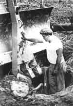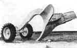 ZANJADORA «KAJAANI». - En Finlandia se usa para el saneamiento de zonas forestales y ciénagas. Las orejas se componen de dos partes, cuya sección externa o ala, desmontable a fin de reducir la anchura durante el transporte, en operación normal empuja hacia afuera la tierra excavada de modo que no vuelva a caer a la zanja. Dos planchas flotantes posteriores aminoran la sumersión de la zanjadora cuando funciona en pantanos y disminuyen al mínimo la resistencia de arrastre, haciendo asimismo las veces de patines, con inclinación regulable. El frente del aparato descansa en un eje dotado de ruedas neumáticas a manera de carretilla.