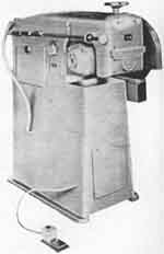 SIERRA DE RECORTAR N° 606. - Compacta, tipo de ariete, funcionamiento neumático. Esta sierra de recortar se construyó para operación continua en fábricas de muebles, carpinterías mecánicas y otros establecimientos de labra. Se puede suministrar el motor, que es de 7,5 caballos. Al pisar el pedal, se da el golpe. Con cada pisada, el émbolo del golpe se coloca en la posición predeterminada y luego regresa. El ajuste de la velocidad de salida del pistón está a cargo del operario. Las hojas de sierra con diámetro de 41 cm. son las normales. Espacio de asiento, 63 X 113 cm. Peso neto, 435 Kg.