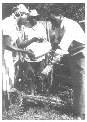 Good hygienic standards are necessary in A.I. work. Here, the owner of the cow has provided soap, water and a towel for the technician.