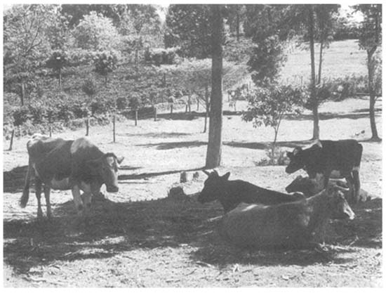 A smallholder's herd of crossbred cattle, all got by artificial insemination.
