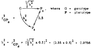 However, even a correlation of only 0.5 is no hindrance for progeny testing bulls. Assuming the heritability of a complete lactation yield, h2c, to be 0.3 (Meyn and Münsterer, 1968), the heritability of a single test day, h2s, can be calculated from: