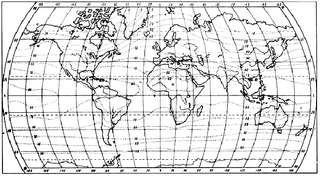 1. Mean annual world temperatures at sea level (Fahrenheit).