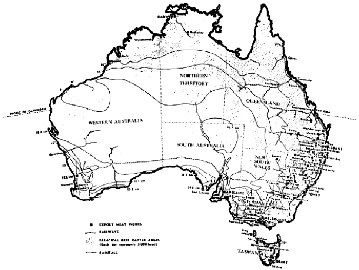 2. Beef cattle distribution and rainfall in Australia.