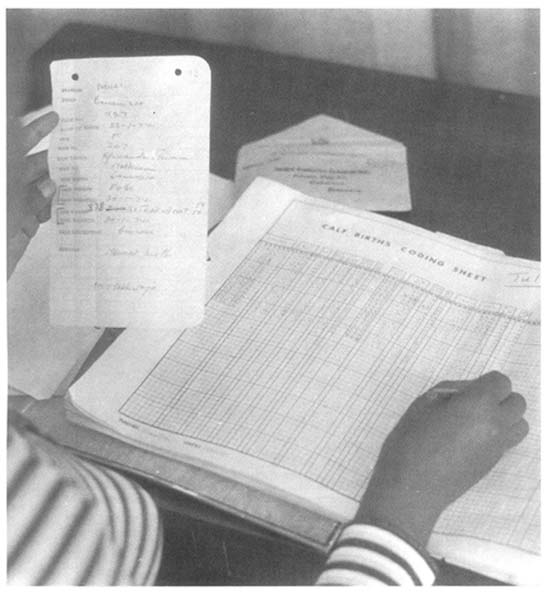 Birth records are checked on receipt and all details, plus details of ranch, breed, month of birth, sex, age of dam and previous parous state of dam, are entered on an appropriately laid out coding sheet. This operation is shown in the illustration below (Figure 6).