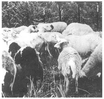 Increasing attention is being paid in Australia to the question of protecting the growing fleece from damage. This problem is also of considerable importance for woolled sheep in the tropics. Hayman (1953) showed that various forms of fleece damage (bacterial stains not removed by scouring, cotting of fibres and even breakage) may occur when the fleece is soaked and the skin remains wet for some time. He demonstrated genetic differences in resistance between groups of sheep, the resistant animals having more wax in the fleece.