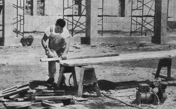 - La pompe-dynamo légère Homelite, actionnée par un moteur à 4 temps, débite du courant alternatif 115 volts, puissance 1 500 watts. Pèse seulement 104 lb. (47 kg). Existe en versions essence et gaz naturel.