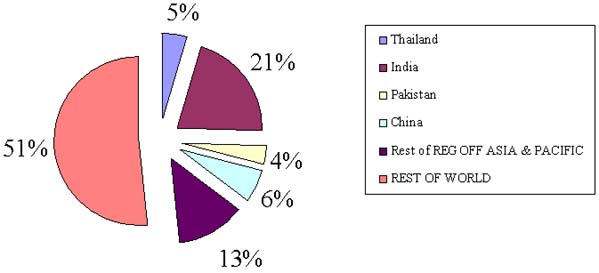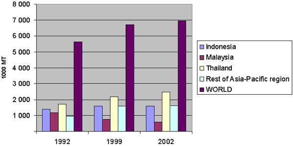 Countries in Asia-Pacific region with largest production of natural rubber (1000 MT)
