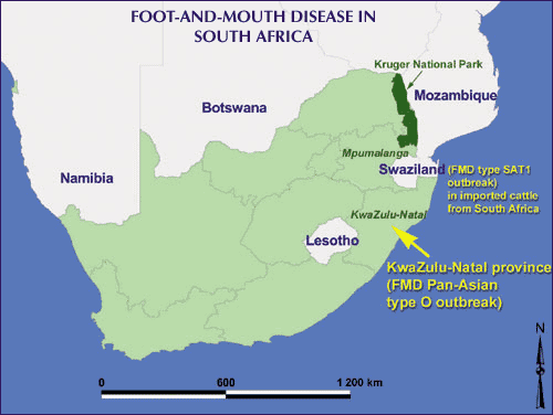 The potential for the spread of livestock epidemic diseases over vast distances was, unfortunately, clearly demonstrated late this year when Pan-Asian type O foot-and-mouth disease (FMD) entered South Africa. It was the first outbreak of FMD in South Africa's free zone since 1957; it is also the first time that the Pan-Asian strain of FMD type O has been detected on the African continent.