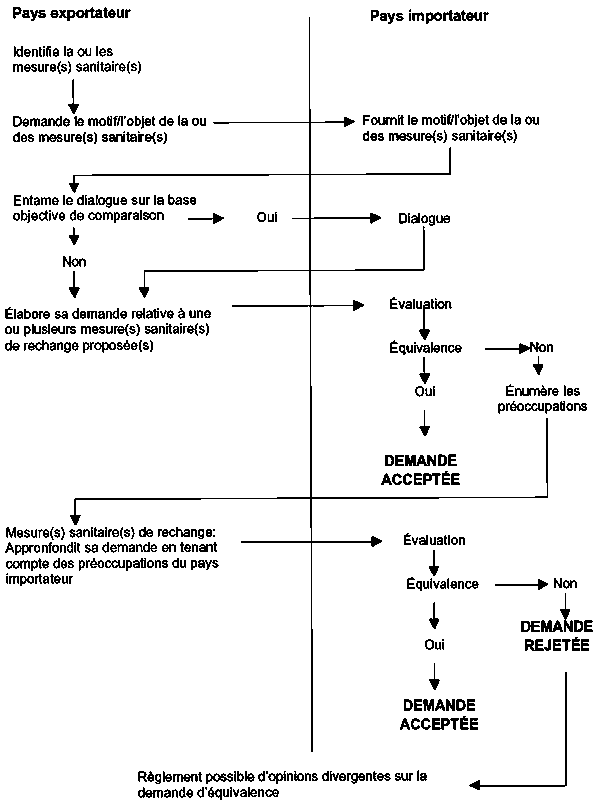 15. Lorsque les pays nont aucun antécédent commercial important dans le domaine alimentaire ou quune vague connaissance de leurs systèmes respectifs dinspection et de certification des denrées alimentaires, la détermination de léquivalence pourra nécessiter une comparaison détaillée par juxtaposition de toutes les mesures sanitaires pertinentes.