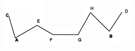 | Poligonación entre los puntos conocidos A y B utilizando los puntos conocidos C y D como orientación, y determinando los puntos E, F, G y H mediante la medición de ángulos y distancias |