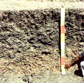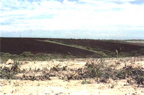 sable fin et pauvre en MO. A l'arrière plan, les sols vertiques noirs argileux riches en
