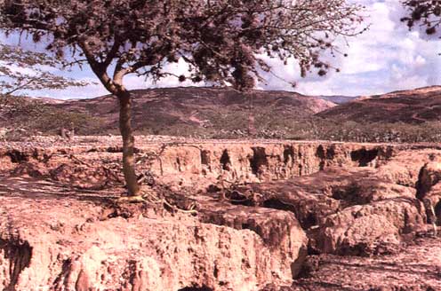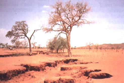 ravinement généralisé dès qu'on les cultive. Sabouna, Burkina Faso.