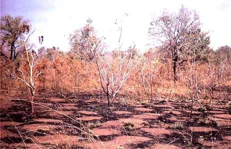 saison sèche. On note ici la limite entre la zone brûlée tardivement depuis trente ans