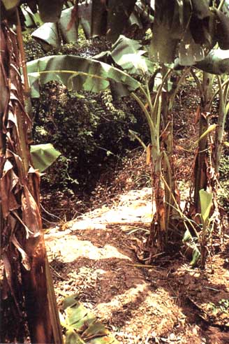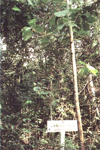 - sur la parcelle protégée intégralement (à peine deux feux accidentels en 30 ans !), les herbes ont pratiquement disparu: elles ont été étouffées par une forêt secondaire très dense, riche en lianes et en sous-bois, beaucoup plus vigoureuse que la savane environnante brûlée presque chaque année, composée de grands arbres dominants (10 à 30 arbres/ha) et d'un mélange de hautes herbes et de nombreux arbustes.