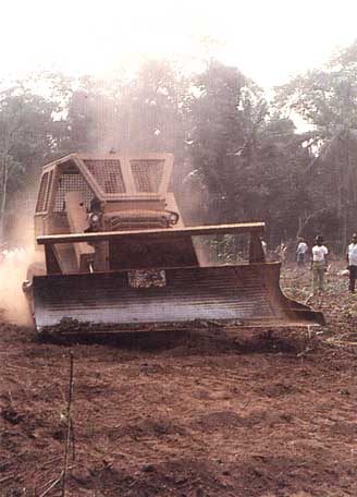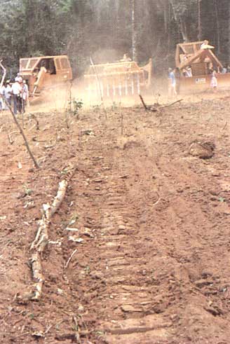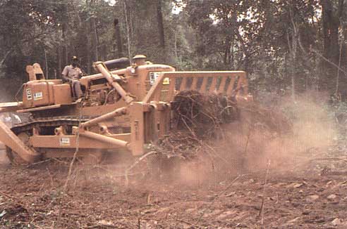 Caterpillar ait renversé les troncs des principaux arbres, le râteau passe pour arracher