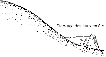 Enfin dans la vallée, toute une série d'aménagements permettent de valoriser les eaux d'épandage des crues ou l'exploitation de la nappe phréatique (figures 35 et 36).