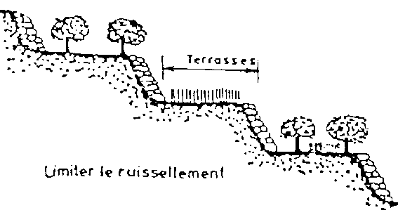 Les gradins créent des zones planes et suppriment l'érosion en nappe,