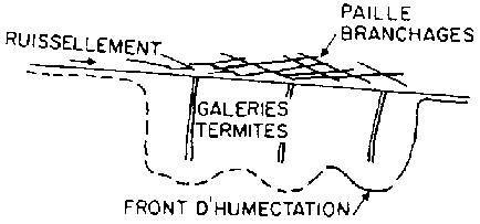 Dans la zone soudano-sahélienne d'Afrique occidentale, la plupart des sols sont encroûtés en surface et donnent lieu à un ruissellement superficiel particulièrement dommageable sous ces climats semi-arides d'autant plus que ce ruissellement emporte sélectivement les matières organiques et les nutriments des horizons superficiels.